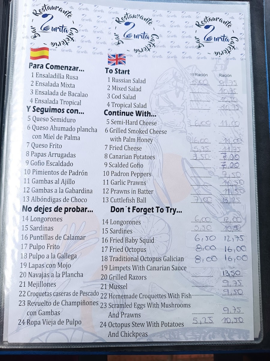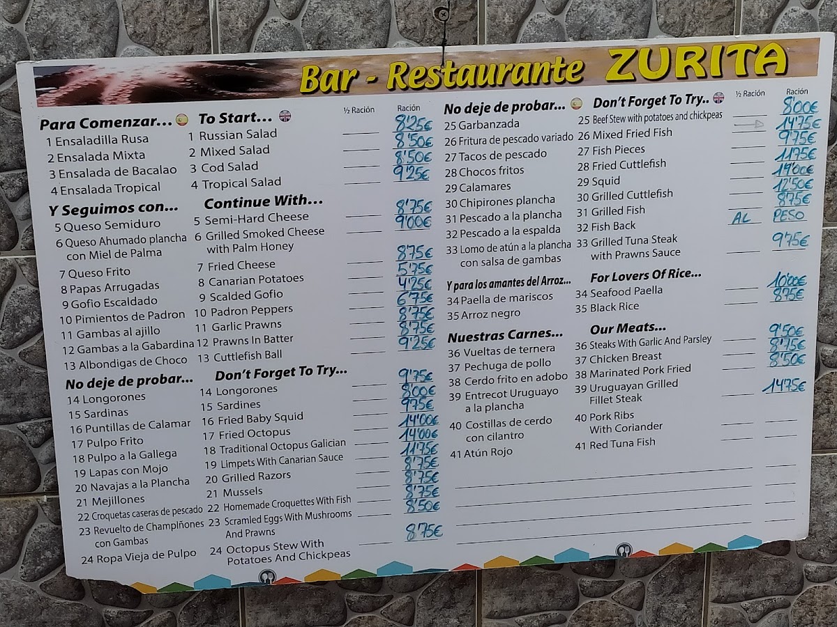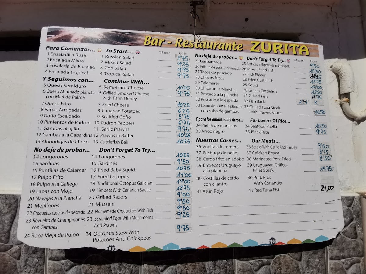 Restaurante Zurita, nestled along Av. del Cristo in Ojos de Garza, Las Palmas, offers a vibrant bar and grill experience with a strong local flavor. The menu shines with fresh seafood, including deep-fried fish paired with homemade fries, delivering generous portions at impressively affordable prices. Traditional Canarian dishes like papas arrugadas and savory meatballs reflect authentic island flavors, perfectly complemented by well-crafted local beverages such as cappuccino and cortado.