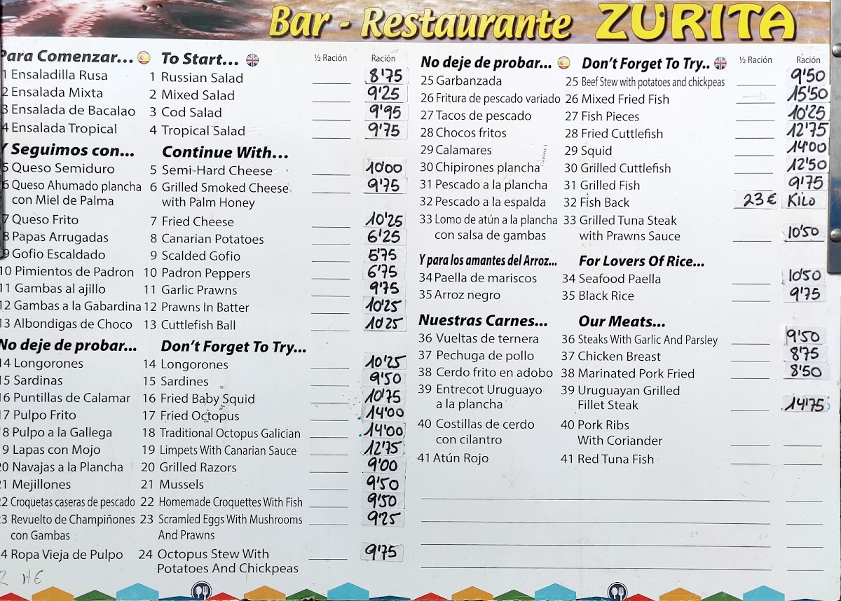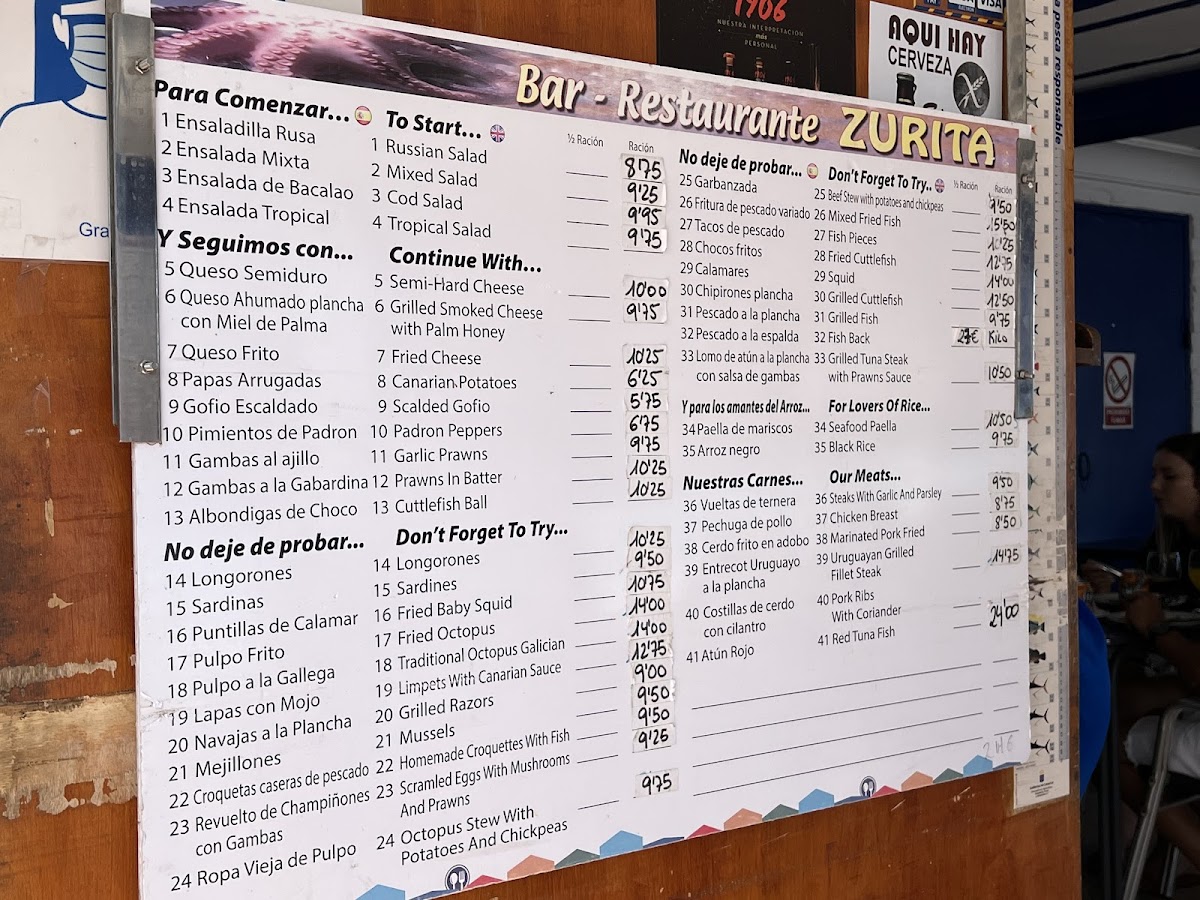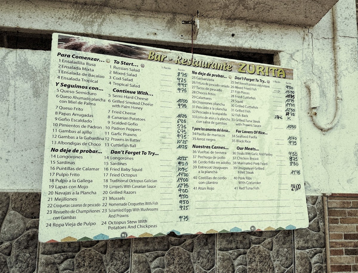 Restaurante Zurita, nestled along Av. del Cristo in Ojos de Garza, Las Palmas, offers a vibrant bar and grill experience with a strong local flavor. The menu shines with fresh seafood, including deep-fried fish paired with homemade fries, delivering generous portions at impressively affordable prices. Traditional Canarian dishes like papas arrugadas and savory meatballs reflect authentic island flavors, perfectly complemented by well-crafted local beverages such as cappuccino and cortado.